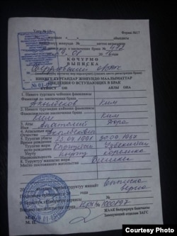 Бакыта и Самару мы нашли в Центре обслуживания населения №2. Бакыт Акашев перевелся в Ленинский районный паспортный стол, Самара Малашева - в бюро ЗАГС .того же района. Акашев оказался в отпуске. Марат Акылбеков надеялся отменить акт о регистрации брака с кореянкой и получить документ о браке со своей настоящей супругой, однако Самара Малашева все опровергла: