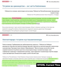 Между этими текстами – полтора года. Общее у них одно: авторы обоих материалов восхваляют мультикультурализм и толерантность в Узбекистане. В первом тексте это оценивается как результат "мудрого руководства Ислама Каримова", во втором – "успех Шавката Мирзиёева".