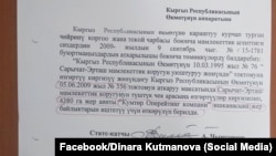 О том, что площадь заповедника была сокращена на 4380 гектаров, говорится в письме статс-секретаря Госагентства по охране окружающей среды и лесному хозяйству Абдымитала Чынгожоева аппарату правительства страны. 5 июня 2009 года кабмин вынес постановление о внесении правок в границы Сарычат-Ээрташского заповедника для геологоразведочных и добычных работ «Кумтора». 9 сентября правительство дало госорганам соответствующее поручение. Через два дня, 11 сентября, Чынгожоев в своем письме правительству отчитывается: «В целях исполнения постановления правительства внесены изменения в южных границах Сарычат-Ээрташского государственного заповедника, и участок площадью в 4380 гектаров передан «Кумтор Оперейтинг Компани»».